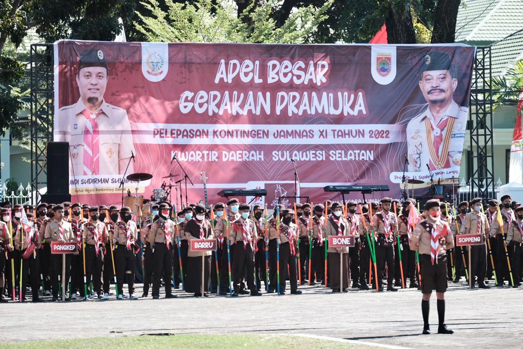 “Kami berharap kepada seluruh kontingen Jambore Nasional Kwarda Pramuka Provinsi Sulawesi Selatan dapat memberikan yang terbaik selama berjalannya kegiatan,” katanya usai mengikuti Apel Besar Gerakan HUT Pramuka Ke-61 Tahun dan Pelepasan Kontingen Jambore Nasional XI Gerakan Pramuka bertempat di Halaman Upacara Rumah Jabatan Gubernur Sulawesi Selatan, (7/8/2022)