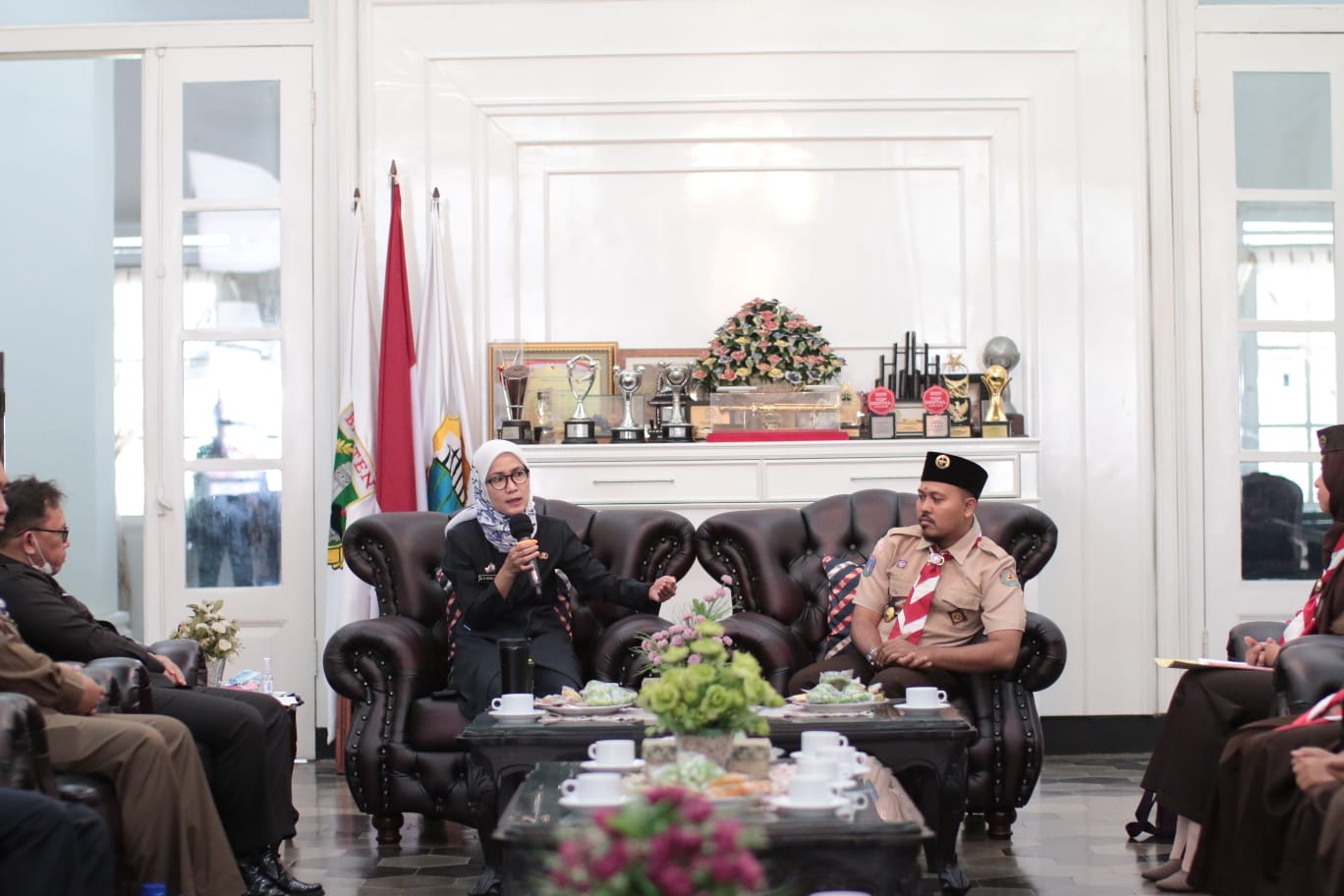 star7tv.com – LEBAK ,- Kunjungan Silaturahmi Peserta Jambore Nasional XI Kontingen Kwarcab Lebak ke Pemerintah Kabupaten Lebak diterima langsung Bupati Lebak Iti Octavia Jayabaya beserta jajaran. Bertempat di Gedung Negara Pendopo Bupati Lebak, Senin (8/8/2022).
