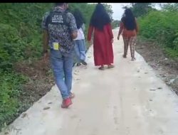 Saat Ketua DPD LSM Prabhu Indonesia Jaya Kabupaten Bekasi bersama Wakil Ketua Aliansi Wartawan Indonesia Bangkit Bersama Bekasi Raya, melakukan Investigasi kelokasi jalan lingkungan yang berada di kampung Muara memang benar sudah pada retak dan pada belah,