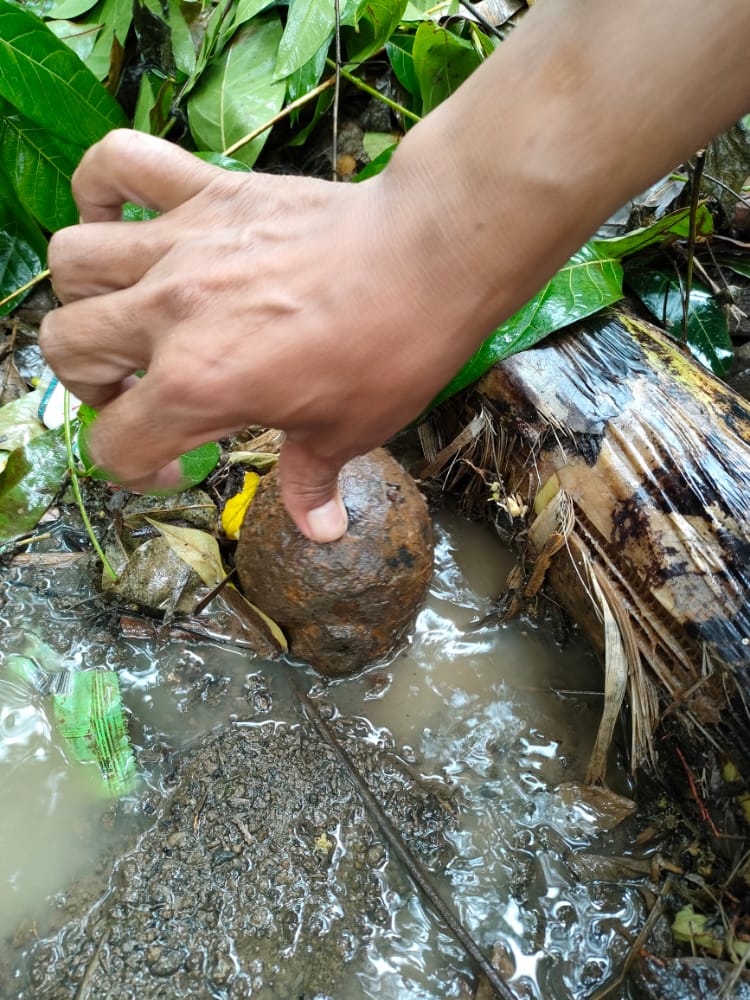 Sarpan (49) menuturkan, pada pukul 07.15 WIB dirinya berangkat dari rumahnya menuju sawah yang berjarak kurang lebih 500m dari rumah, selesai mengerjakan pekerjaan disawah pukul 11.00 WIB sarpan berniat membersihkan diri dari lumpur sawah di sebuah sumur yang sudah tidak dipakai. Pada saat Sarpan membersihkan diri, Ia menemukan sebuah benda bulat dan keras yang tertutup lumpur dengan bentuk bulat mirip dengan granat.
