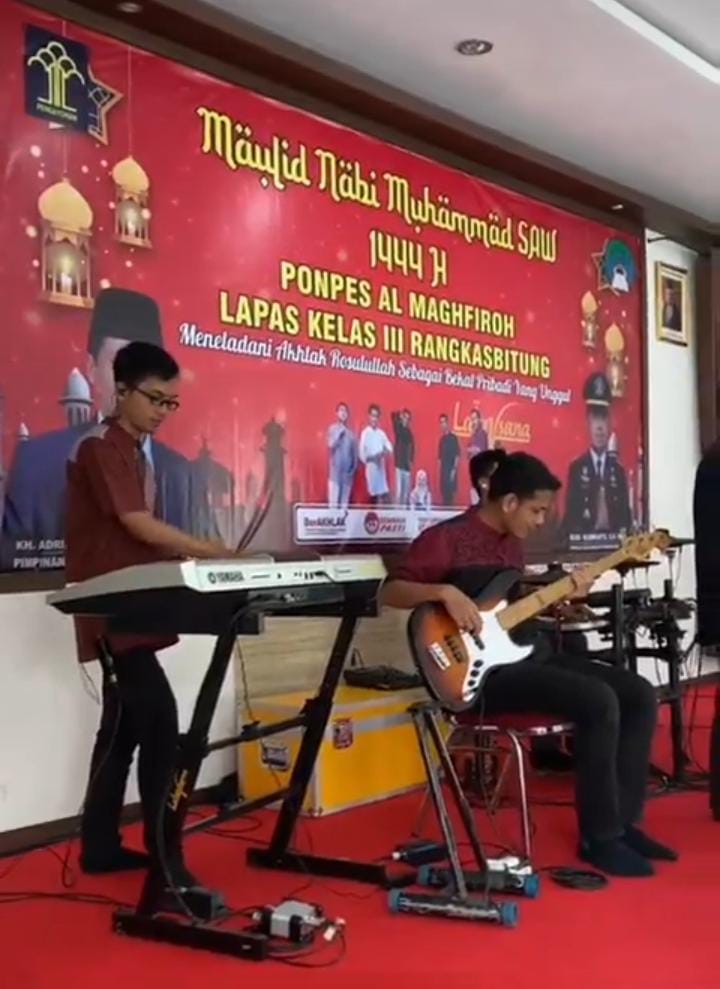 star7tv.com – Rangkasbitung, – Lapas kelas III Rangkasbitung Kanwil Kemenkumham Banten memperingati hari Maulid Nabi Muhammad SAW, tampak ratusan Warga Binaan Pemasyarakatan kompak melantunkan sholawat rasul bersama Grup Band Latansana Band bertempat di aula Lapas Rangkasbitung, Selasa (11/10)