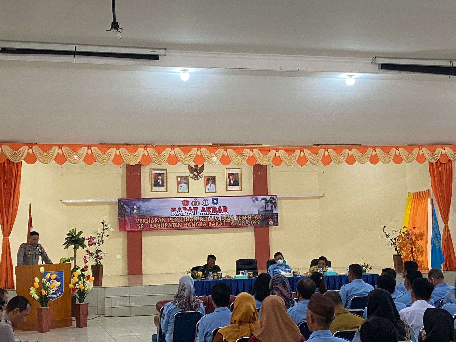 Star7tv.com – Ba-Bel – Bertempat di Gedung Graha Aparatur Pemda Kabupaten Bangka Barat Wakapolres Bangka Barat Kompol Andri Eko Setiawan, SIK melaksanakan Kegiatan Rapat Akbar Persiapan Pemilihan Kepala Desa tahun 2022 di Kab. Bangka Barat.