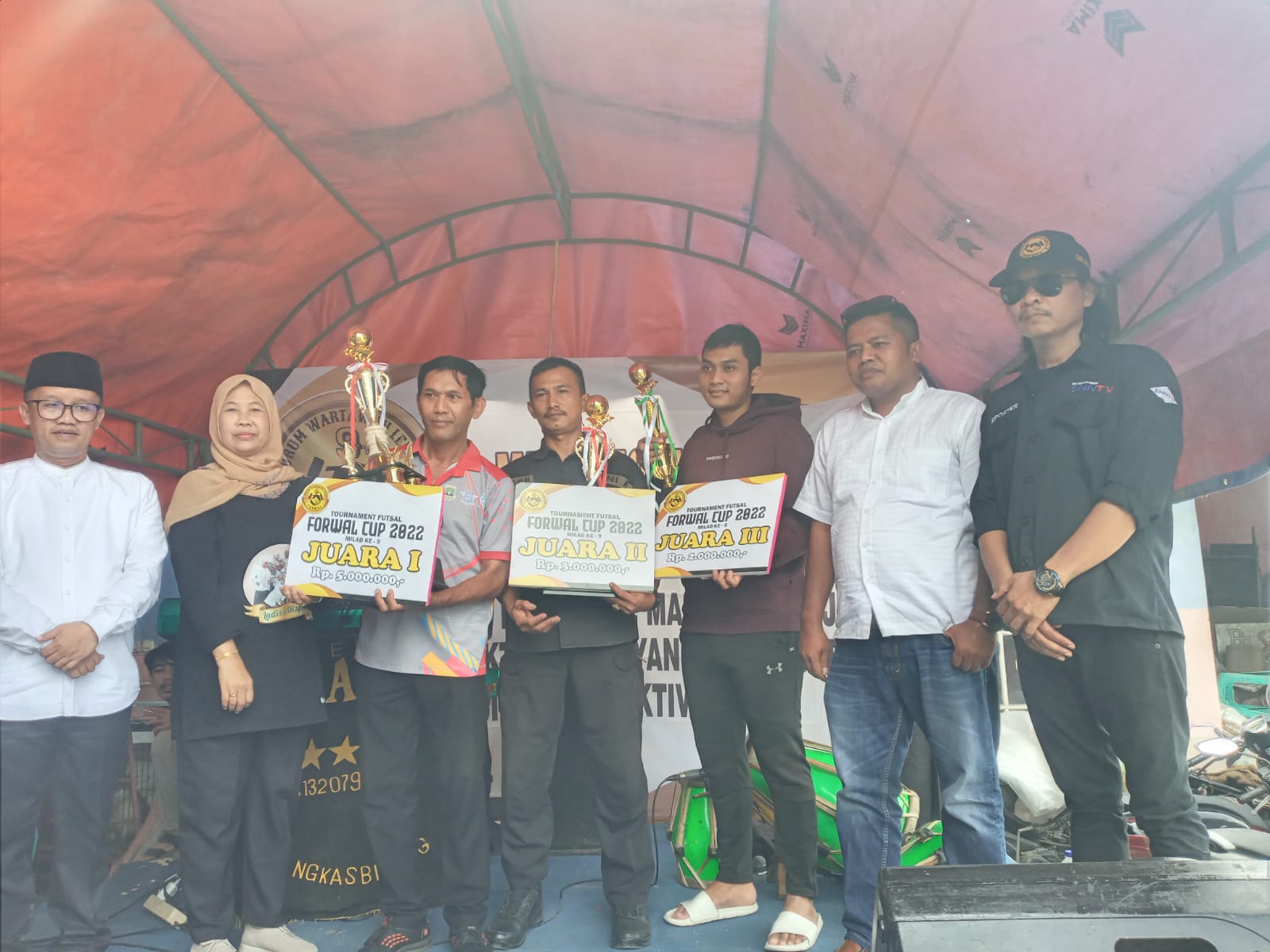 Di akhir sambutan kegiatan langsung pada acara pembagian hadiah turnamen futsal