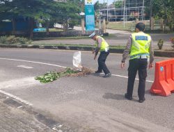 Pada saat media meliput kegiatan,terpantau Polisi lalulintas sedang memasang tanda Emergency di lokasi tersebut