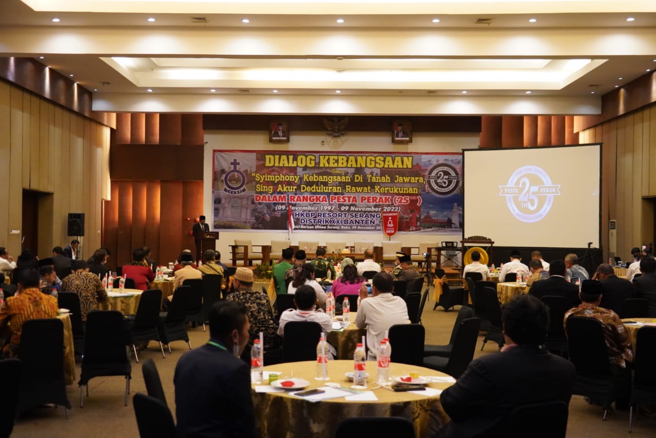 Dialog kebangsaan ini dihadiri juga oleh Kepala Kesbangpol Banten mewakili Pj. Gubernur Banten, Kepala Setra Pelayanan Terpadu mewakili Kapolda Banten, Kepala Kemenag Banten, Kasiter Korem 064/MY, Ketua PGIW, Para Pembicara/Narasumber
