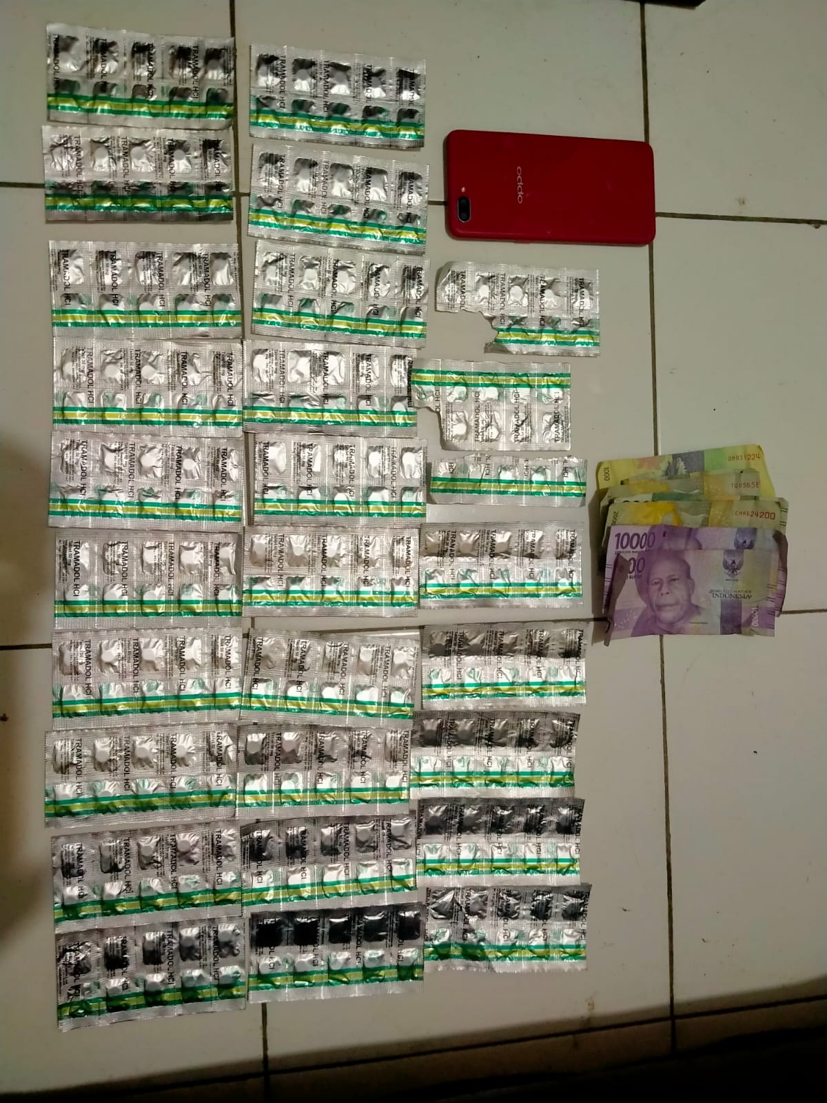 Pelaku MM(29) warga Desa Sukamanah Kecamatan Rangkasbitung pada Selasa (15/11/2022) sekira pukul 19.30 Wib berhasil diamankan Jajaran Sat Resnarkoba Polres Lebak berikut Barang Bukti 271 (dua ratus tujuh puluh satu) butir obat merek Tramadol, 1 (satu) buah tas gendong warna hitam, 1 (Satu) unit handphonhe merek OPPO warna merah dan uang tunai hasil penjualan sebesar Rp.29.000,- (dua puluh Sembilan ribu).