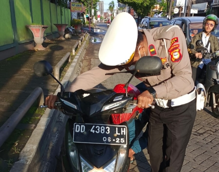 Bantu pengendara sepeda motor mogok ini yang dilakukan Kanit Turjagwali satlantas Polres Gowa