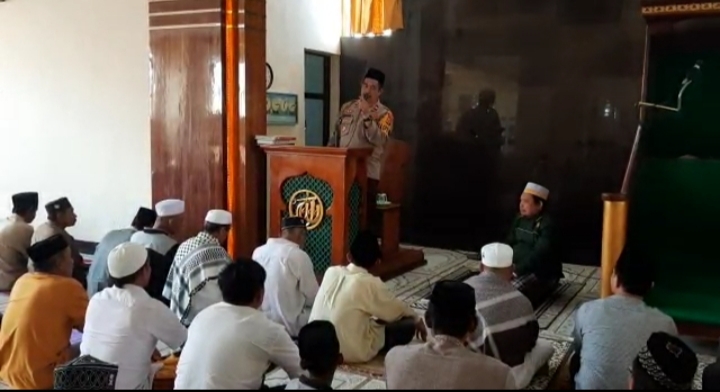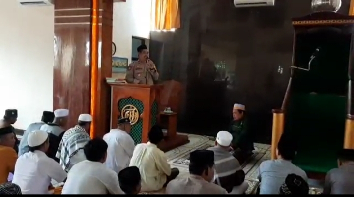 Giat Kapolsek Iptu Amiruddin Conde S,.Pd dalam ceramah safari sholat Jumat Pencerahan pencegahan aksi kriminal di masyarakat