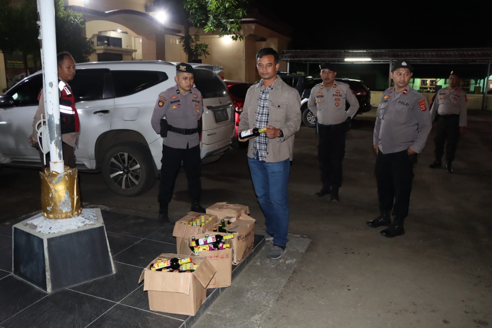 “Hasil Operasi malam ini kami berhasil mengamankan puluhan botol miras dari warung-warung yang menjual miras di Wilayah Kecamatan Cibadak dan Kecamatan Warunggunung,” ungkapnya.