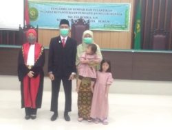 Acara dilanjutkan dengan sesi foto bersama Panitera Muda Hukum PN kelas II Mentok yang baru Egi Desika, SH beserta keluarga.