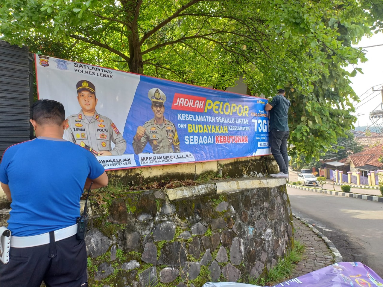 Jelang Nataru, Sat Lantas Polres Lebak Pasang Spanduk Himbauan Kamseltibcar lantas