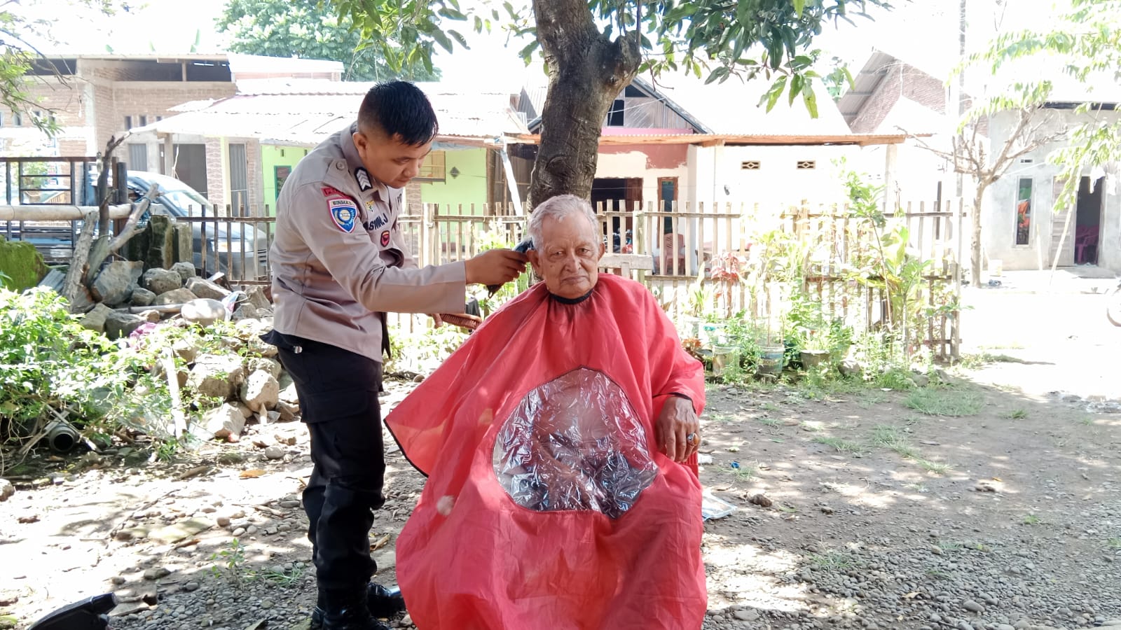 Star7 Tv -Gowa-Bhabinkamtibmas Desa Pabbentengang Polsek Bajeng Polres Gowa Bripka Aswin Jahar, SE melakukan Sambang kewilayah binaannya sekaligus memberikan jasa cukur gratis untuk warganya, Rabu (21/12/2022).