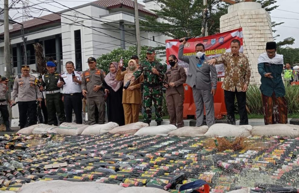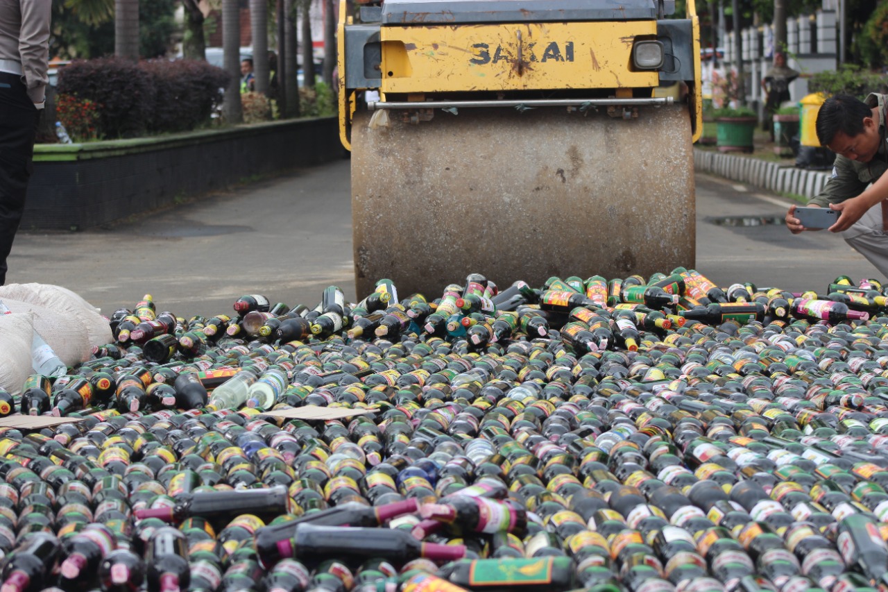 Kapolres Pandeglang, AKBP Belny Warlansyah melalui Kabag Ops Polres Pandeglang, Kompol Yogie Roozandi mengatakan, ribuan botol Miras yang dimusnahkan merupakan gabungan dari beberapa instansi selama kegiatan Operasi Pekat Maung Bina Kusuma yang dilakukan selama 3 bulan kemarin.