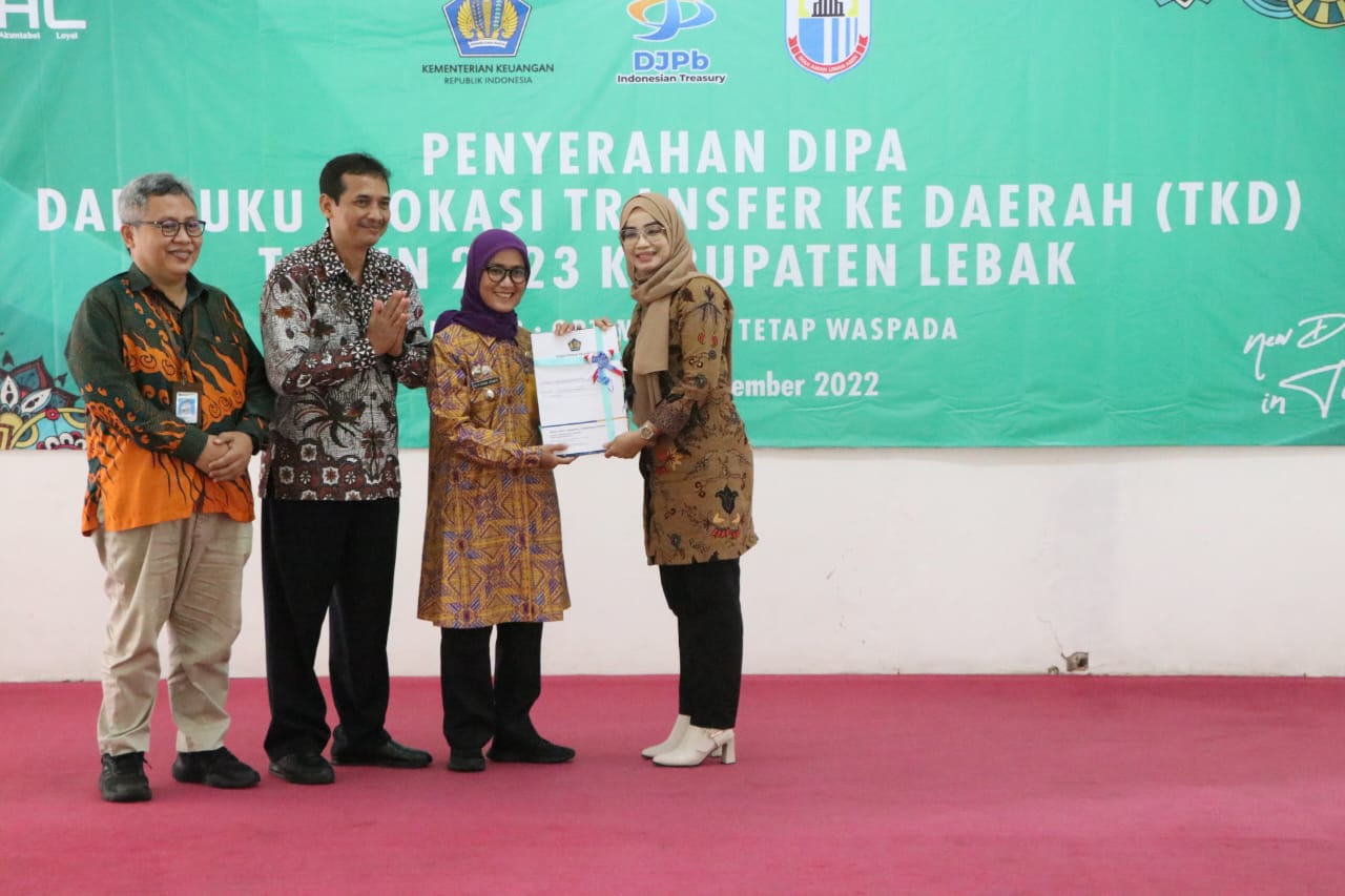 Star7tv.com- Lebak,- Pemerintah Kabupaten Lebak melaksanakan penyerahan Daftar Isian Pelaksanaan Anggaran (DIPA) dan Buku Alokasi Transfer Ke Daerah (TKD) Tahun Anggaran 2023 kepada Satuan Kerja Vertikal Kementerian Negara/Lembaga di wilayah Kabupaten Lebak. Kegiatan ini dilaksanakan di Pendopo Kabupaten Lebak pada Jumat (23