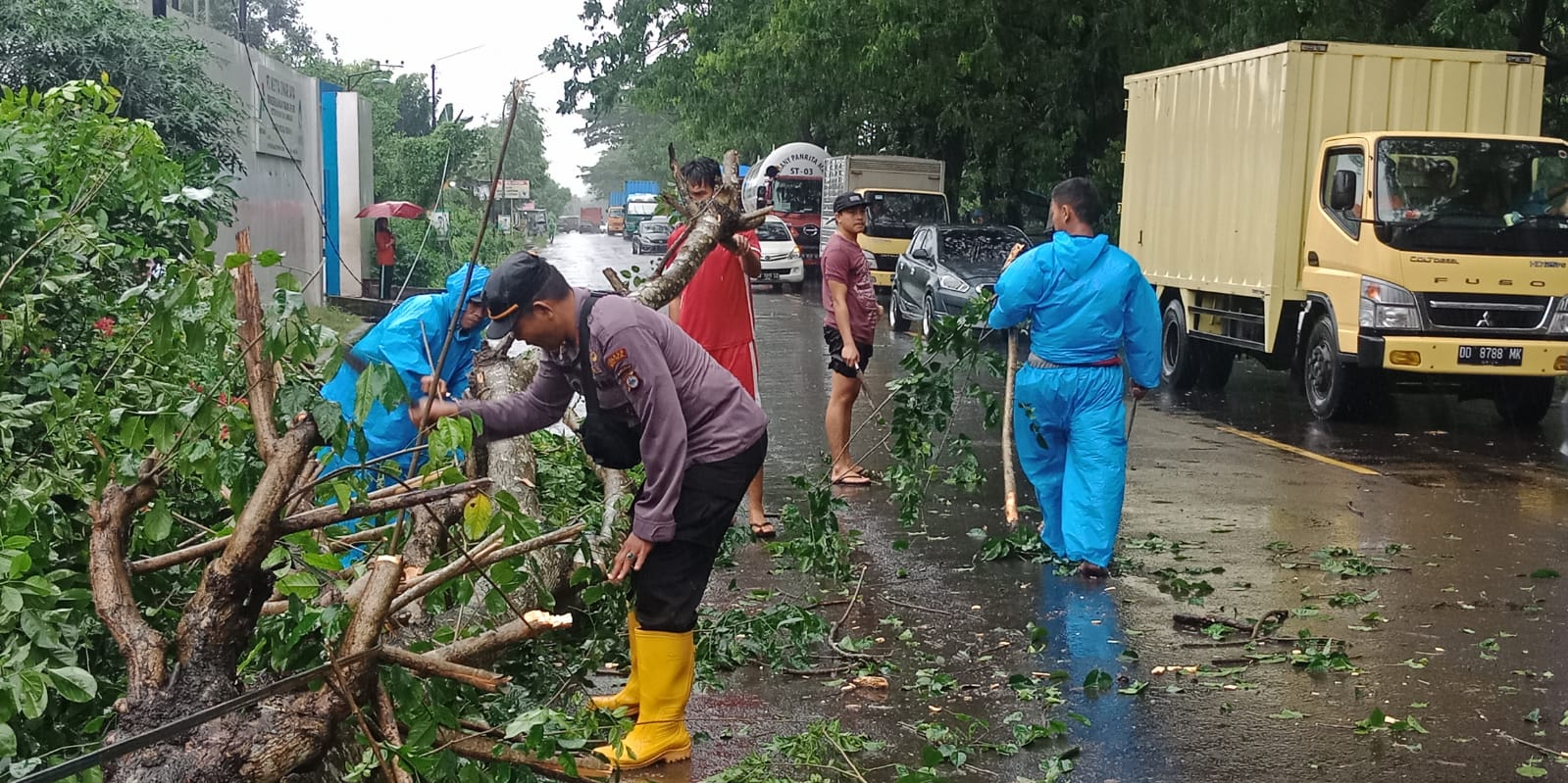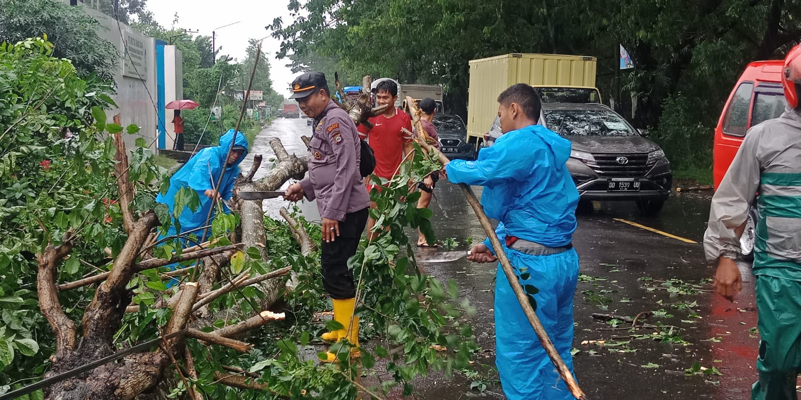 kejadian tersebut Kapolsek AKP Suhardi.S.Hi turun langsung menghimbau warga agar selalu mewaspadai pohon tumbang dan berhati hati dalam berkendara,apalagi memasuki musim hujan yang disertai angin kencang,pohon tumbang bukan hanya rapuh tetapi memang ada potensi untuk tumbang dan sulit diprediksi akibat cuaca ekstrem yang akhir-akhir ini terjadi.
