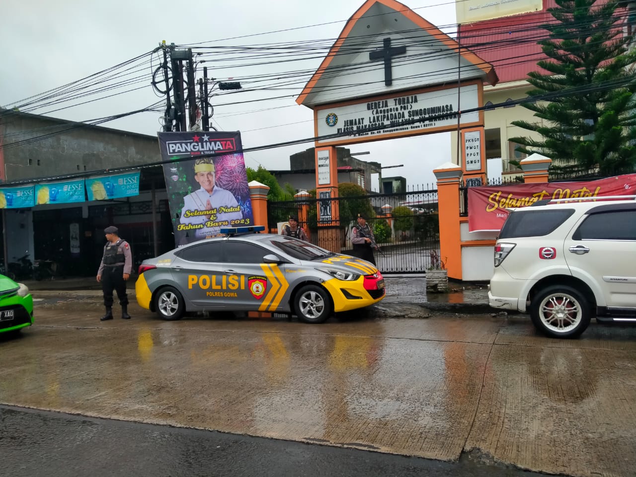 Star7 Tv -Gowa-Personil Subnit 01 Turjawali Sat Samapta Polres Gowa, menggelar patroli dengan Sasaran utama patroli kawasan gereja yang di tempati ibadah umat Kristiani dalam melaksanakan rangkaian Ibadah perayaan Natal dan Tahun Baru 2023.
