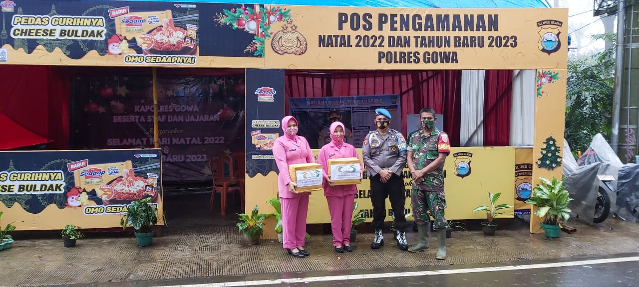 Bhayangkari Ranting Tinggimoncong Berikan Bingkisan Kepada Petugas Pospam Ops Lilin 2022