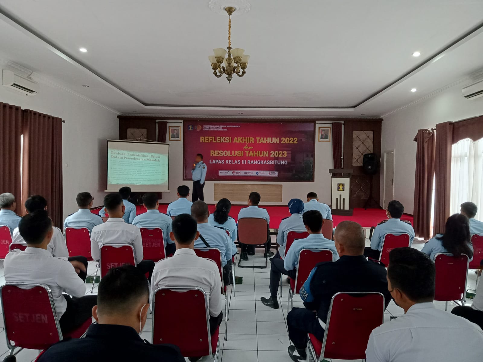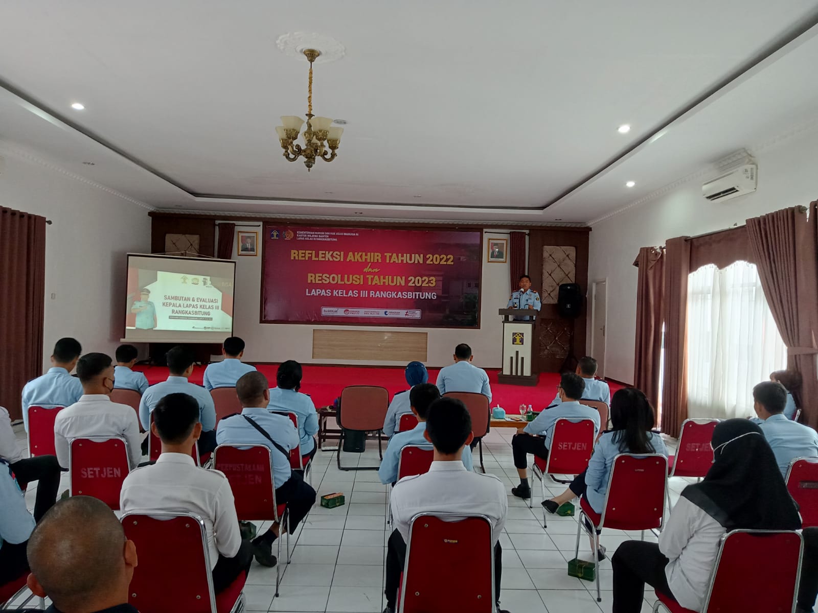Star7tv.com – Rangkasbitung – INFO PAS, menyambut gemilang kinerja tahun 2023, Lapas kelas III Rangkasbitung Kanwil Kemenkumham Banten menggelar kegiatan Refleksi Akhir Tahun 2022 dan resolusi tahun 2023 yang bertempat di Aula Lapas Rangkasbitung, Selasa (27/12)