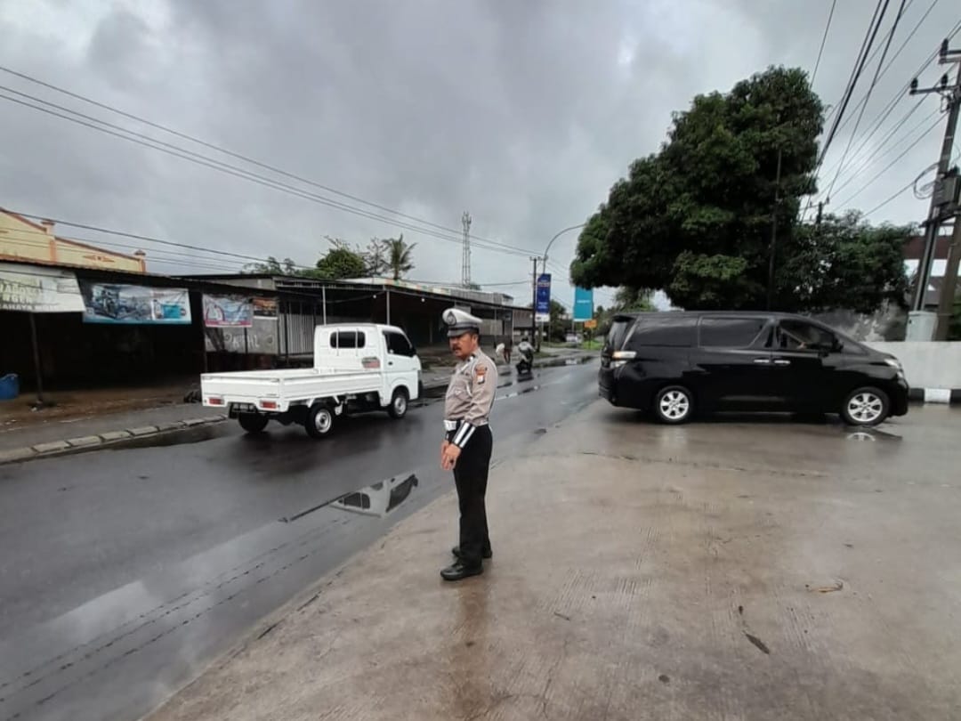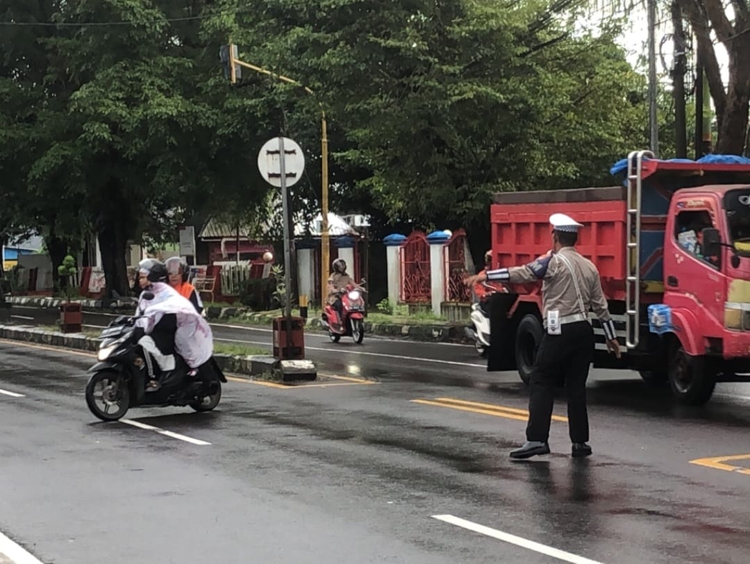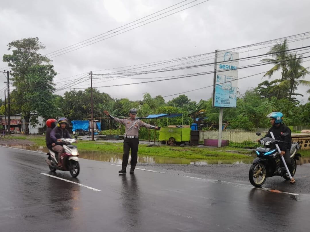 Sat Lantas Polres Takalar Intensifkan Pengaturan Pagi Maski Cuaca Hujan