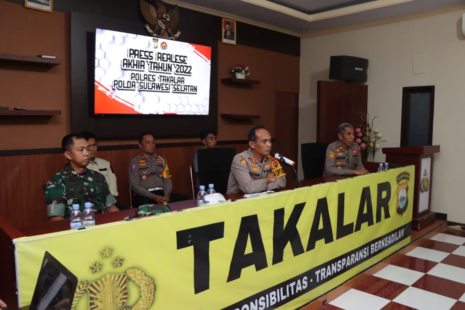 Bertempat di Gedung Aula 99 Mapolres Takalar, Kapolres Takalar menyampaikan banyak hal tentang kilas balik capaian Polres Takalar sepanjang tahun 2022.