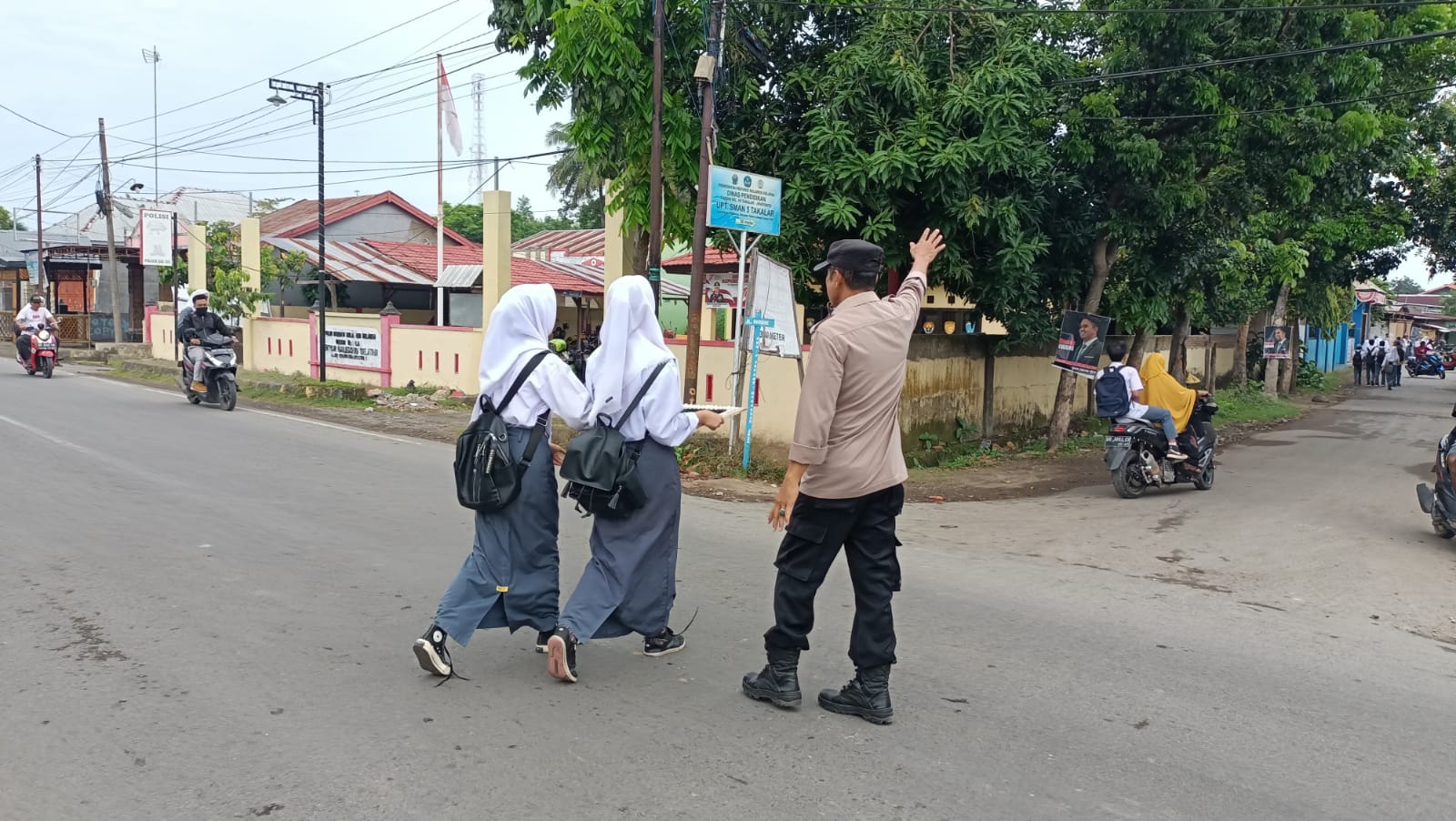 Wujud Kepedulian, Polisi Polsek Galsel Bantu Pelajar Menyeberang Jalan