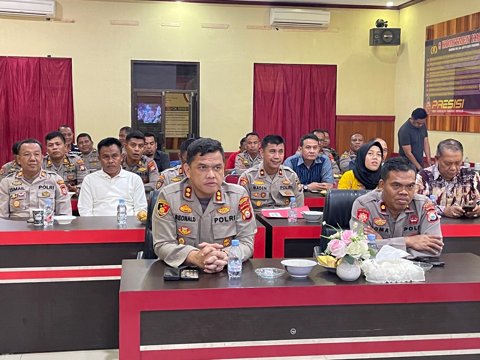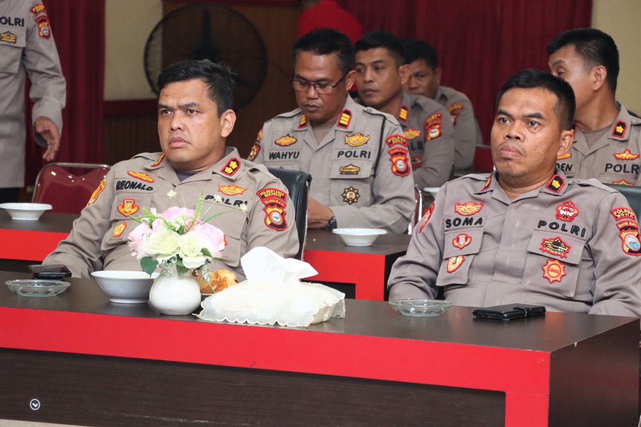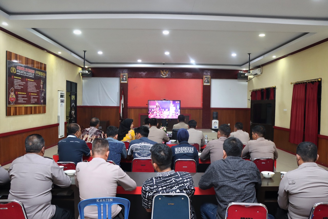 Star7 Tv -Gowa-Kapolres Gowa AKBP Reonald T.S Simanjuntak, S.IK., S.H., M.M., M.I.K bersama para PJU Polres Gowa nonton bareng pagelaran budaya wayang orang yang disiarkan langsung melalui via YouTube, yang digelar di Aula Endra Dharmalaksana Polres Gowa, (16/1/2023)