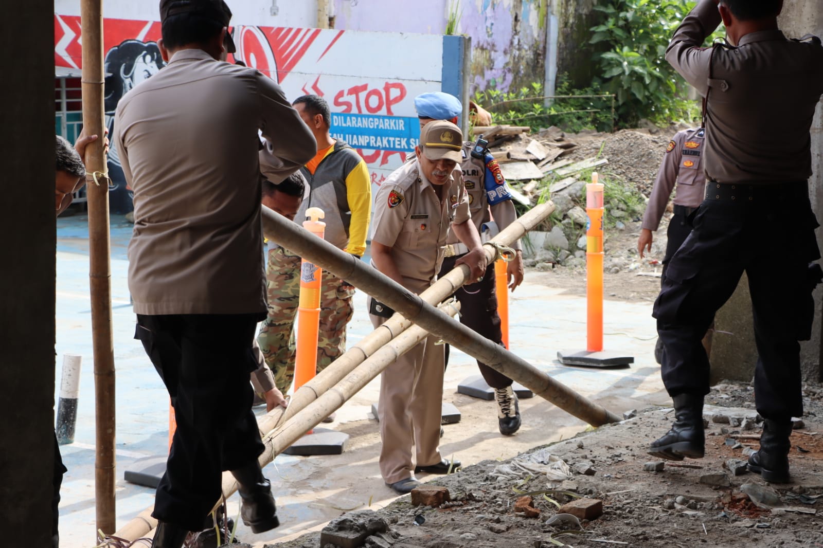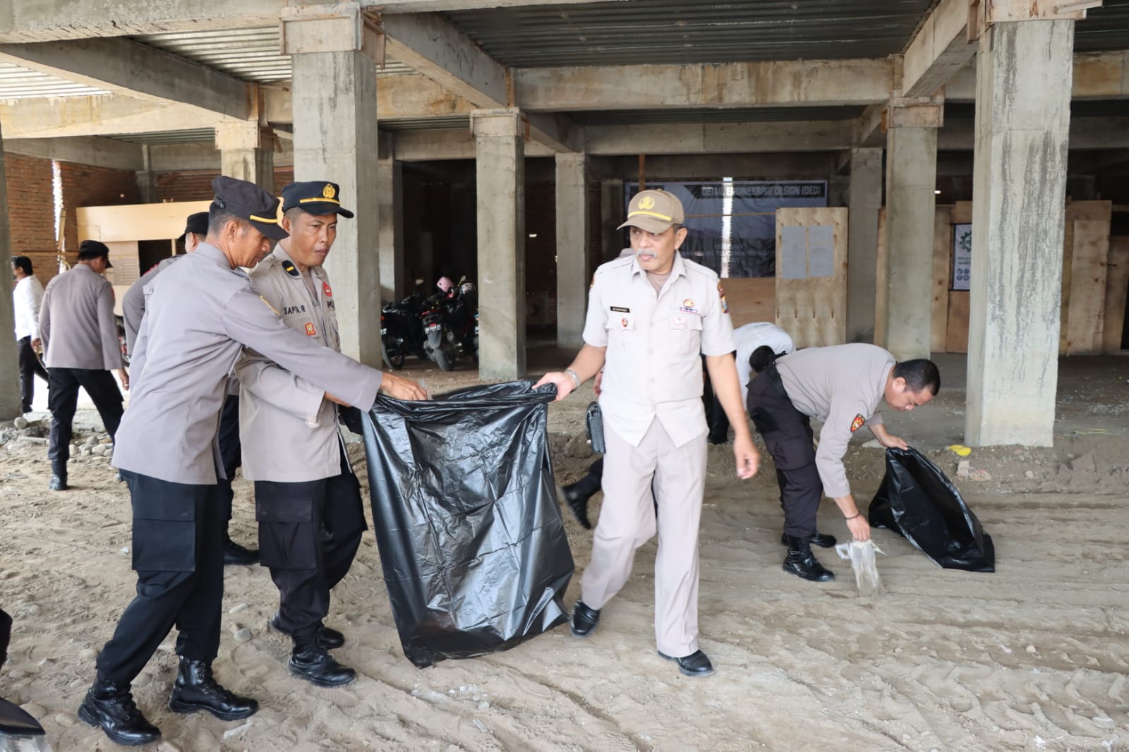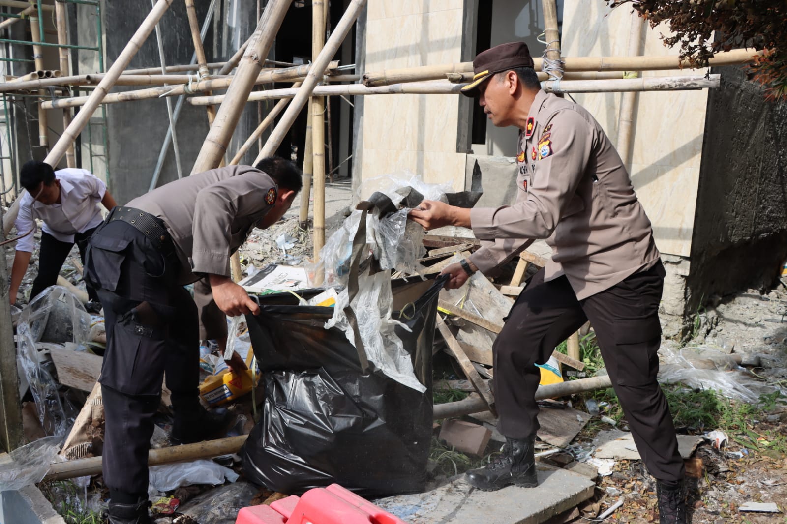 “Kerja bakti ini Sekaligus untuk meringankan beban para pekerja yang saat ini sementara melakukan pembangunan,”ucap Wakapolres.