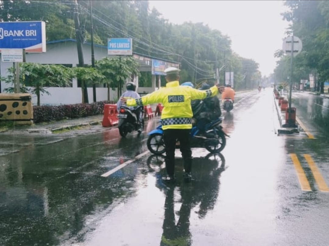 Meski Hujan, Sat Lantas Polres Takalar Tetap Atur Lalu Lintas