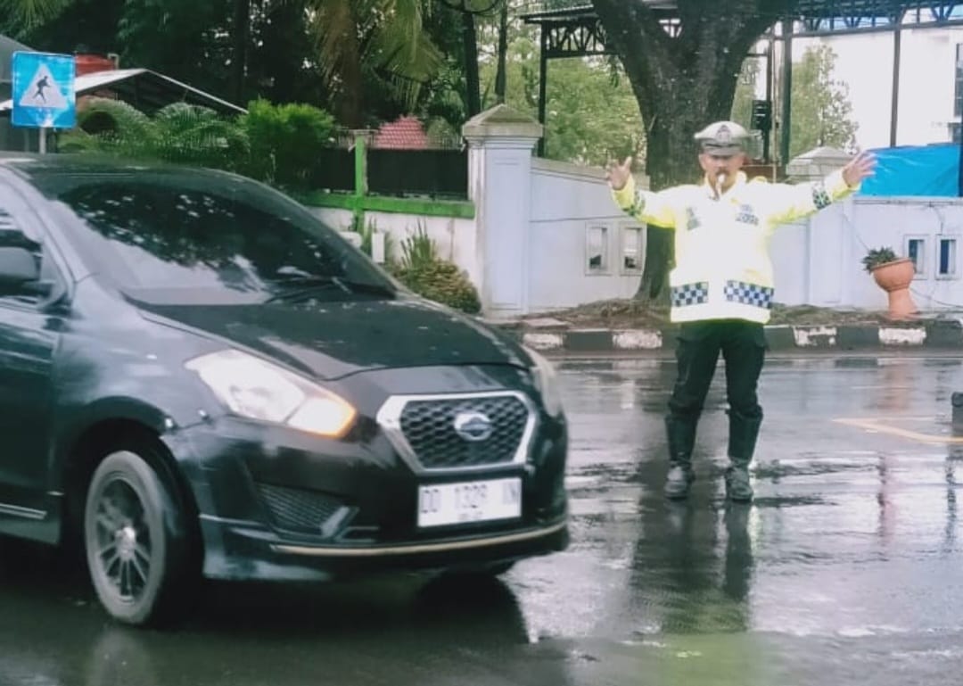 Star7 Tv -Takalar-Cuaca pagi ini hampir diseluruh wilayah Kabupaten Takalar diguyur hujan, tak menyurutkan niat Personel Sat Lantas Polres Takalar Polda Sulawesi Selatan untuk melaksanakan pengaturan lalu lintas demi kelancaran lalu lintas di pagi hari. Rabu (18/1/2023).