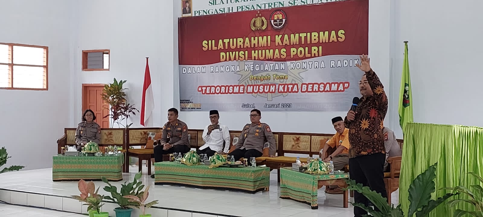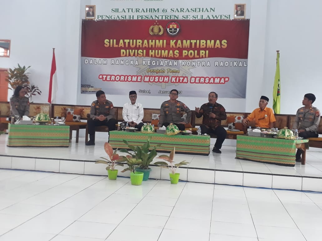 Star7 Tv -Takalar-Kepolisian Republik Indonesia melalui Divisi Humas Polri menggelar “Silaturahmi Kamtibmas bersama para Santri-Santriwati di Ponpes Sultan Hasanuddin Kab. Gowa, Rabu (18/01/2023). Kegiatan tersebut bertema ”Terorisme Musuh Kita Bersama” bertujuan untuk memberikan pencerahan, pemahaman dan pendidikan bagi Santri dan Santriwati yang ada di Pondok Pesantren.