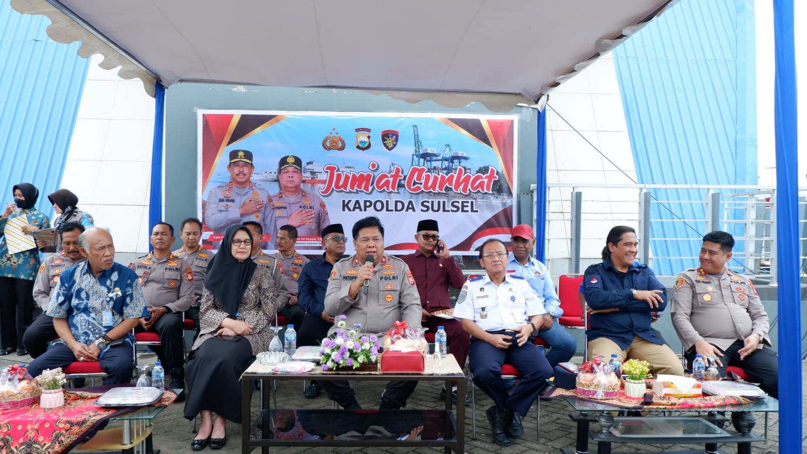 Star7bTv-Takalar-Wakapolda Sulsel Brigjen Pol Chuzaini Patoppoi menggelar kegiatan Jumat Curhat di Kantor Otoritas Pelabuhan Unit Pelabuhan Paotere Makassar, Jumat (27/1/2023). Giat ini guna menerima curhatan warga masyarakat pelabuhan Kota Makassar.