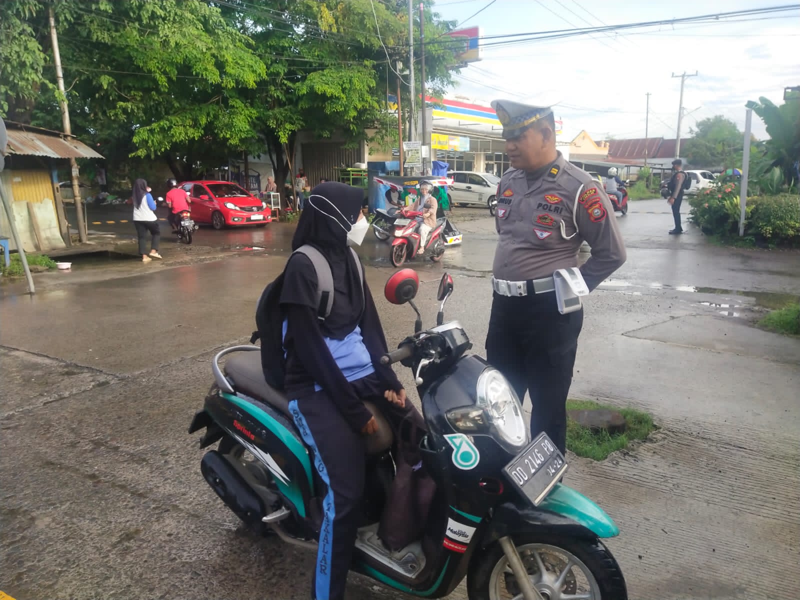 Di tengah pelaksanaan pengaturan lalu lintas, personil Satlantas di lapangan menemukan masih ada masyarakat pengguna jalan yang melanggar aturan berlalu lintas dengan tidak memakai helm saat mengendarai sepeda motor.