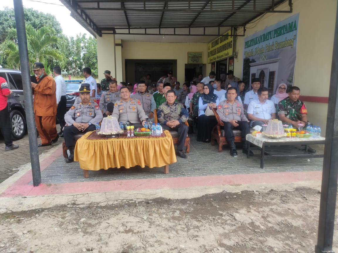 Kegiatan kemudian dilanjutkan dengan peletakan Batu pertama diawali oleh Bapak Kapolres Gowa, dilanjutkan oleh para tamu undangan, serta seluruh personil Polsek Barombong.