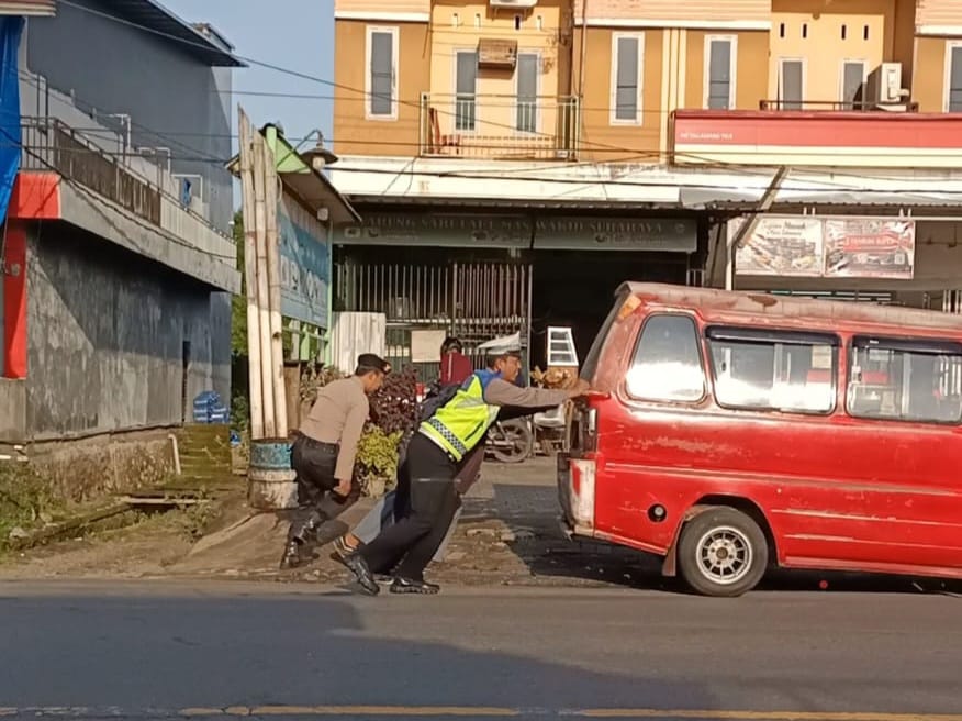 Warga Kagum Lihat Anggota Polisi di Takalar Bantu Dorong Pete’-pete’ Yang Mogok