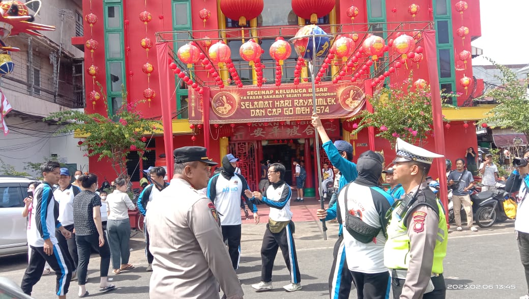 Star7Tv.Com | Pontianak – Polda Kalbar Ritual tutup mata Naga pada rangkaian perayaan Imlek 2574 dan Cap Go Meh tahun 2023 mendapatkan pengamanan dari personil Polresta Pontianak di Klenteng Kwan Tie Bio Jl. Diponegoro Pontianak Kota pada Senin (6/2/2023) pukul 07.00 wib pagi.