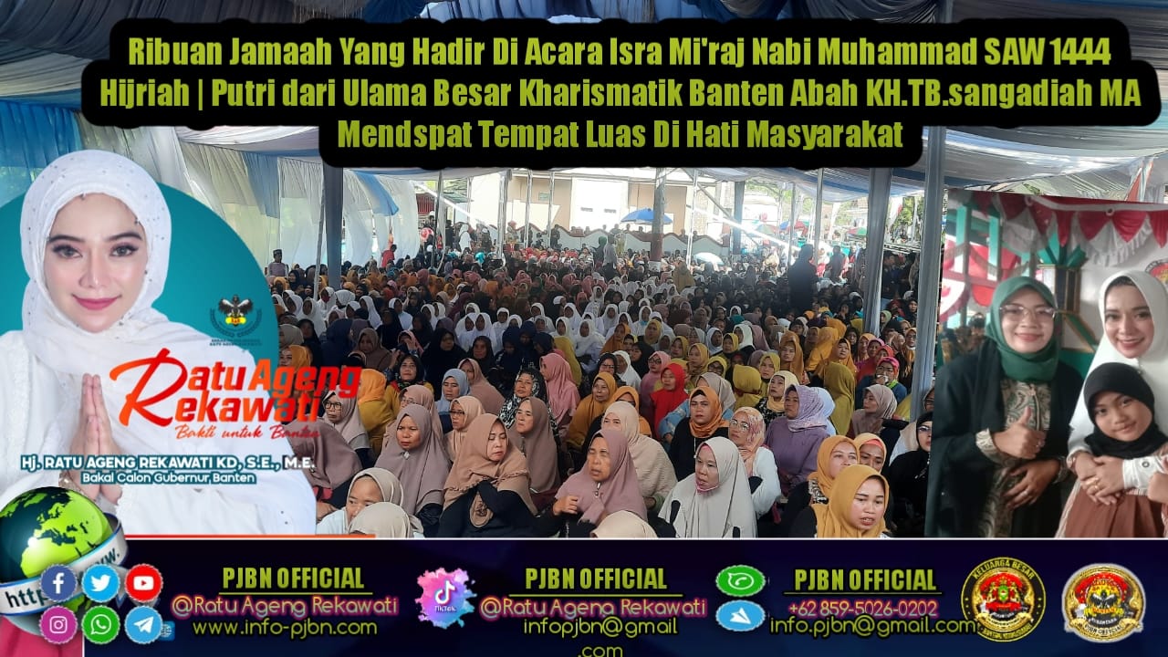 Lanjut Perempuan yang bakal maju Bakal Calon Gubernur Banten 2024 ini , Gelaran acara Isra Miraj 1444 dihadiri masyarakat dari 8 kabupaten/kota wilayah Provinsi Banten.