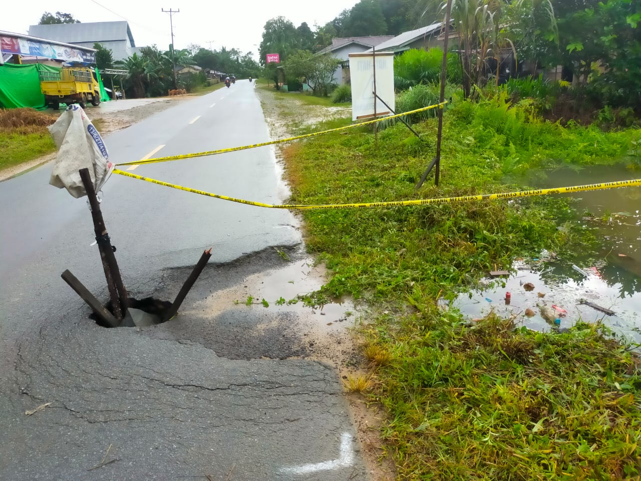 Keluhan ini sudah diajukan ke Pihak-pihak yang bisa membantu, namun belum ditanggapi serius, tampak badan jalan Nasional yang menghubungkan Jalan antar negara mulai roboh jika tidak ditangani segera malah makin parah jalan tersebut.
