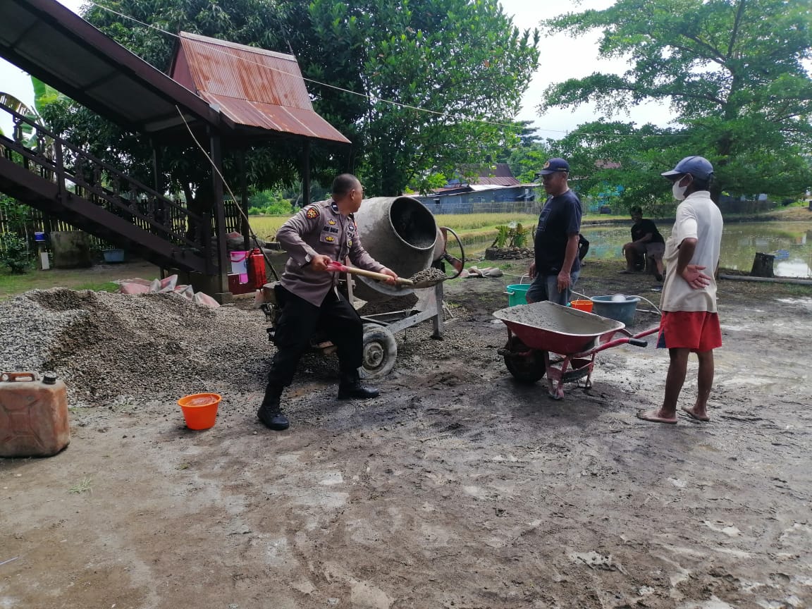 Hadir Di Tengah Masyarakat, Polisi Polsek Mapsu Gotong Royong Bantu Warga Cor Jalan Umum