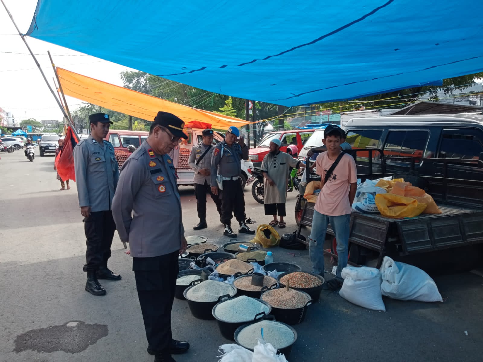 Star7 Tv -Takalar- Dipimpin langsung Kapolsek Iptu Sahabuddin, Personel Polsek Pattallassang Polres Takalar mengecek stok sembako menjelang bulan suci Ramadhan di komplek pasar Sentral Takalar, Kecamatan Pattallassang, Kabupaten Takalar.Sulawesi Selatan (20/3/2023)