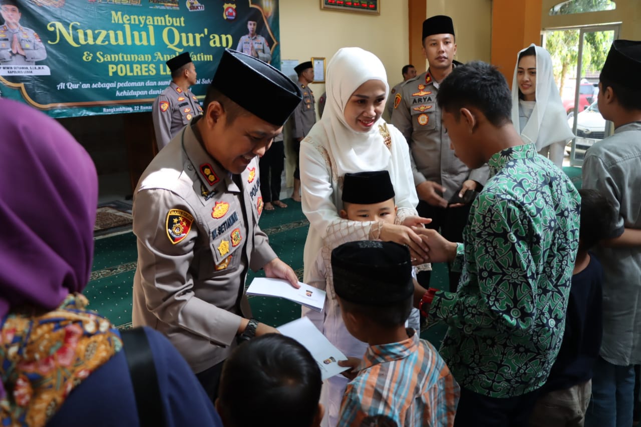 Kegiatan tersebut dihadiri Kapolres Lebak Polda Banten AKBP Wiwin Setiawan, SIK, MH didampingi Ibu Ketua Bhayangkari Cabang Lebak Ny. Mira Wiwin Setiawan, Wakapolres Lebak Polda Banten Kompol Arya Fitri Kurniawan, SIK, SH, Para PJU Polres Lebak, Pengurus Bhayangkari Cabang Lebak, Personil Polres Lebak dan anak yatim.