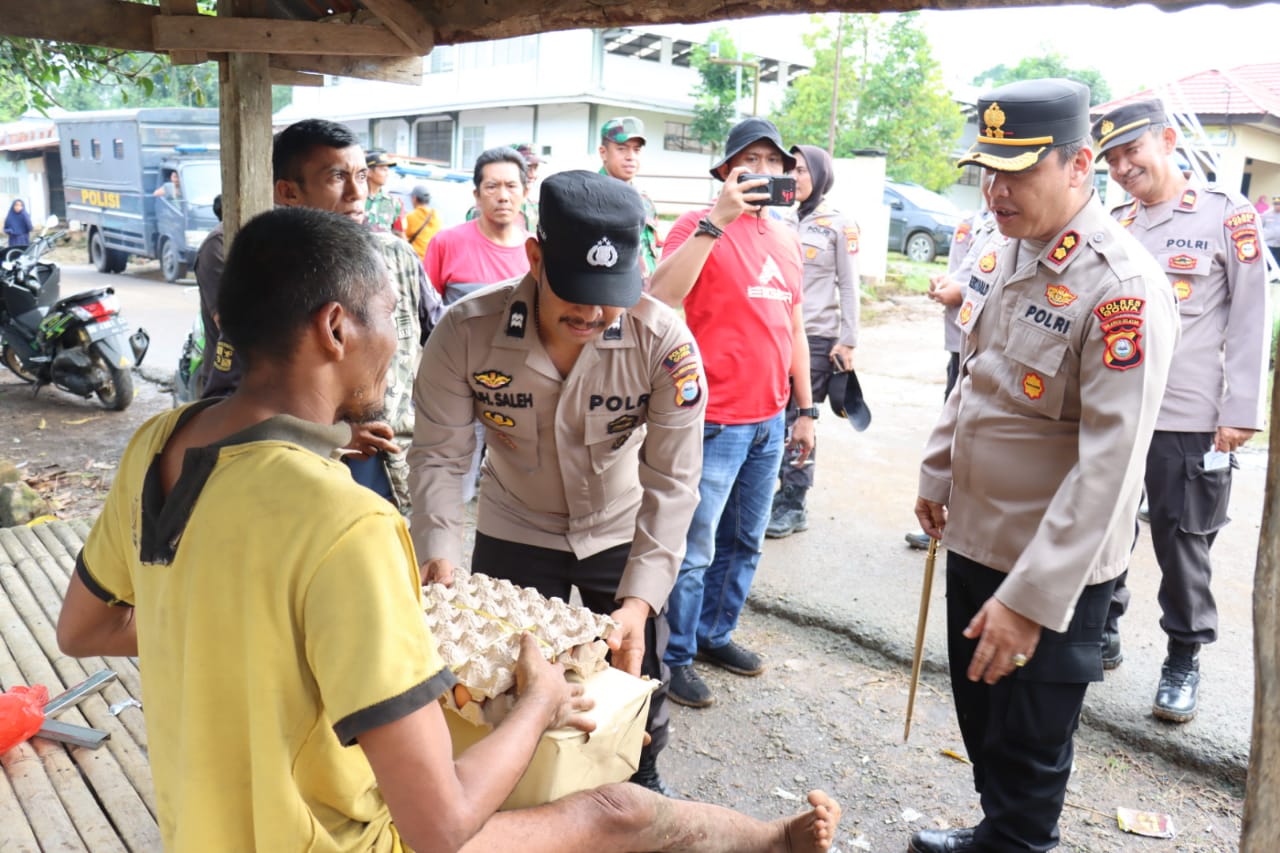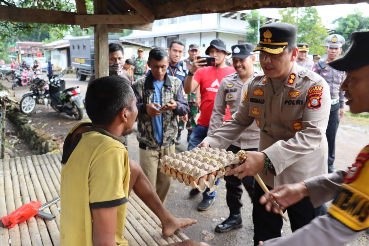 Saat berada dihadapan pria tersebut, Kapolres Gowa AKBP Reonald T.S Simanjuntak langsung memberikan bantuan berupa sembako.