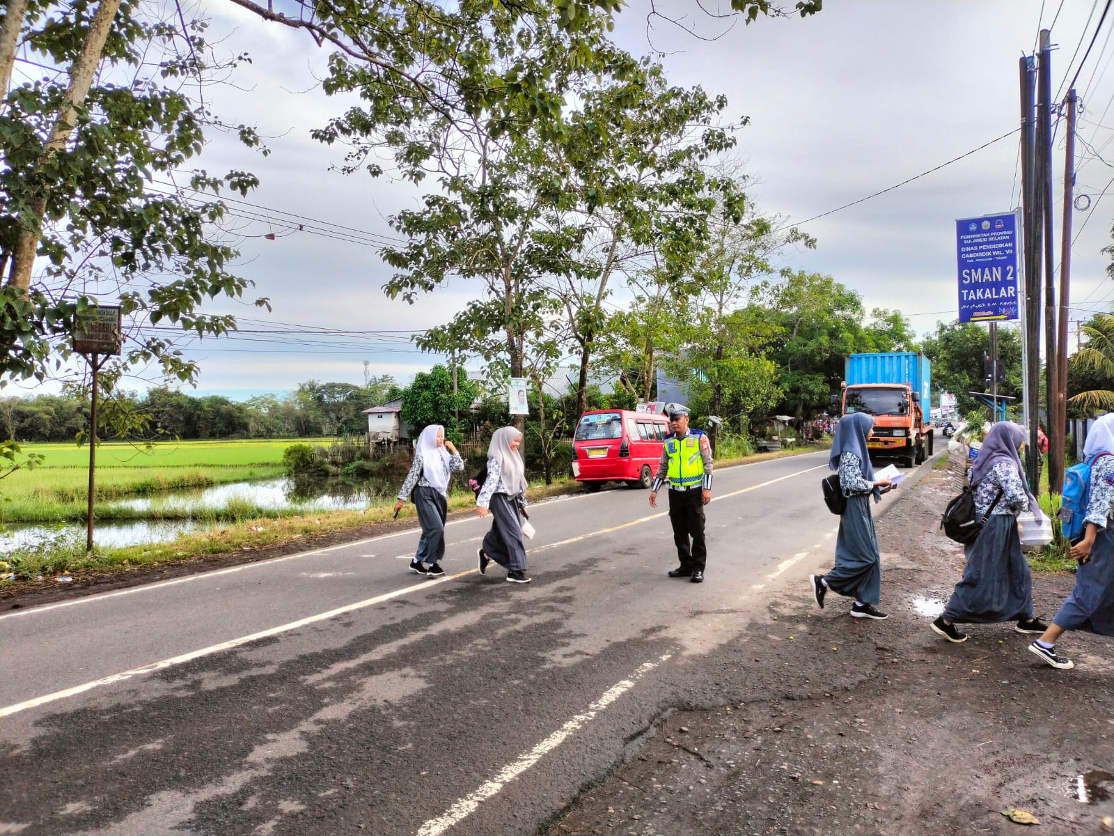 Lanjut Sudirman, “Selain membantu menyeberangkan para siswa, Anggota Satlantas Polres Takalar yang bertugas dilapangan juga memberika pendidikan edukasi keselamatan, bagaimana cara menyeberang jalan apabila petugas tidak ada dilokasi dan memastikan jalan tersebut aman saat menyeberang,” tuntasnya.(Kul indah)