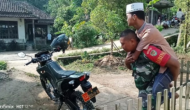 Babinsa Koramil 0602-12/Ciomas menyampaikan, kegiatan tersebut merupakan kegiatan rutinitas yang dilaksakan, salah satunya adalah mengunjungi warga penyandang disabilitas yaitu yang bernama Sarnudi. Sesampainya ditempat tinggal warga tersebut, langsung mengajak Sarnudi untuk berkeliling dengan motor baru Babinsa Honda CRF.