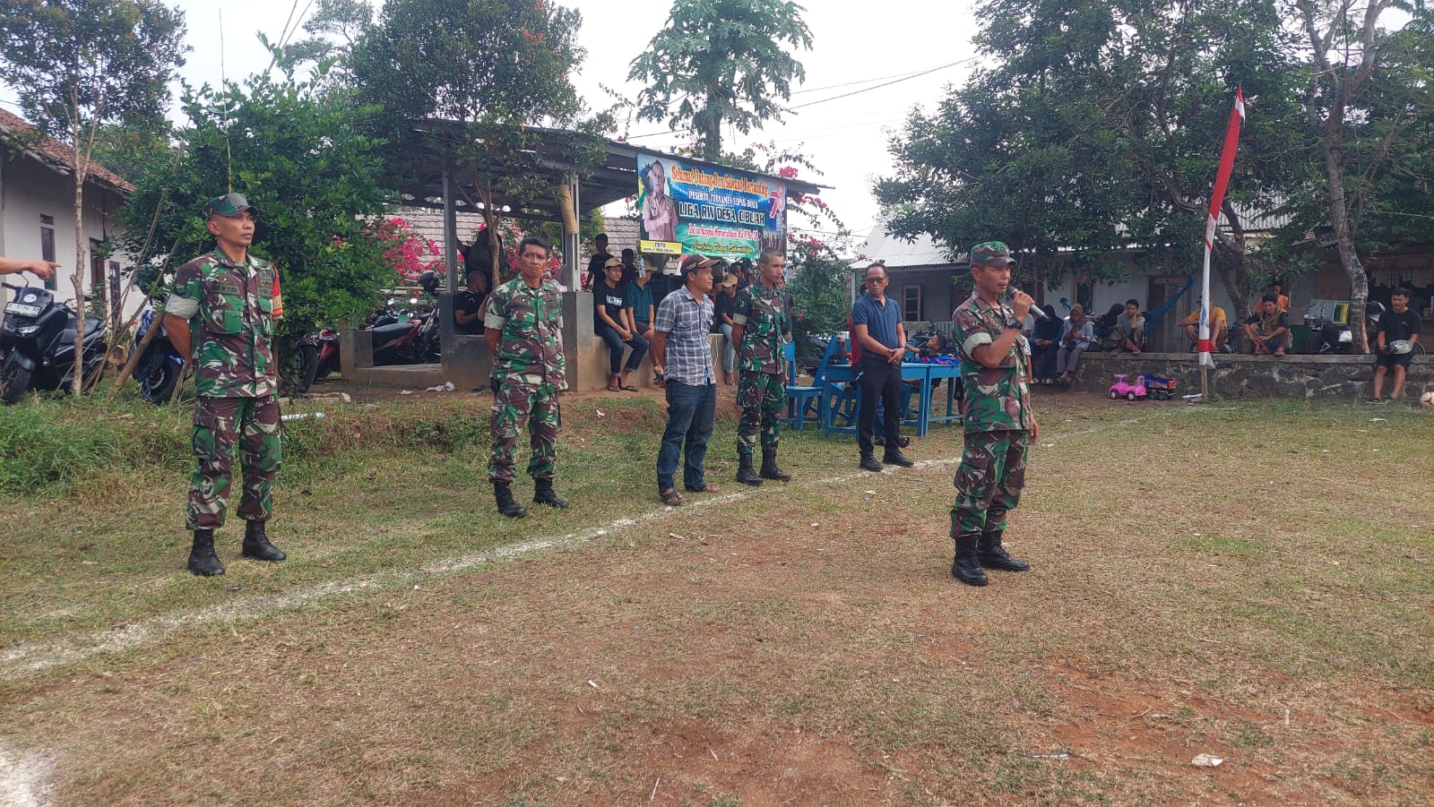 Ditempat yg sama Kepala Desa Cibuah H. Toto menyampaikan “pertandingan ini dalam rangka HUT RI ke 78 memperebutkan tropy piala bergilir, kambing dan piagam penghargaan dari Koramil 0302/Warunggunung selaku pembina sepak bola ”
