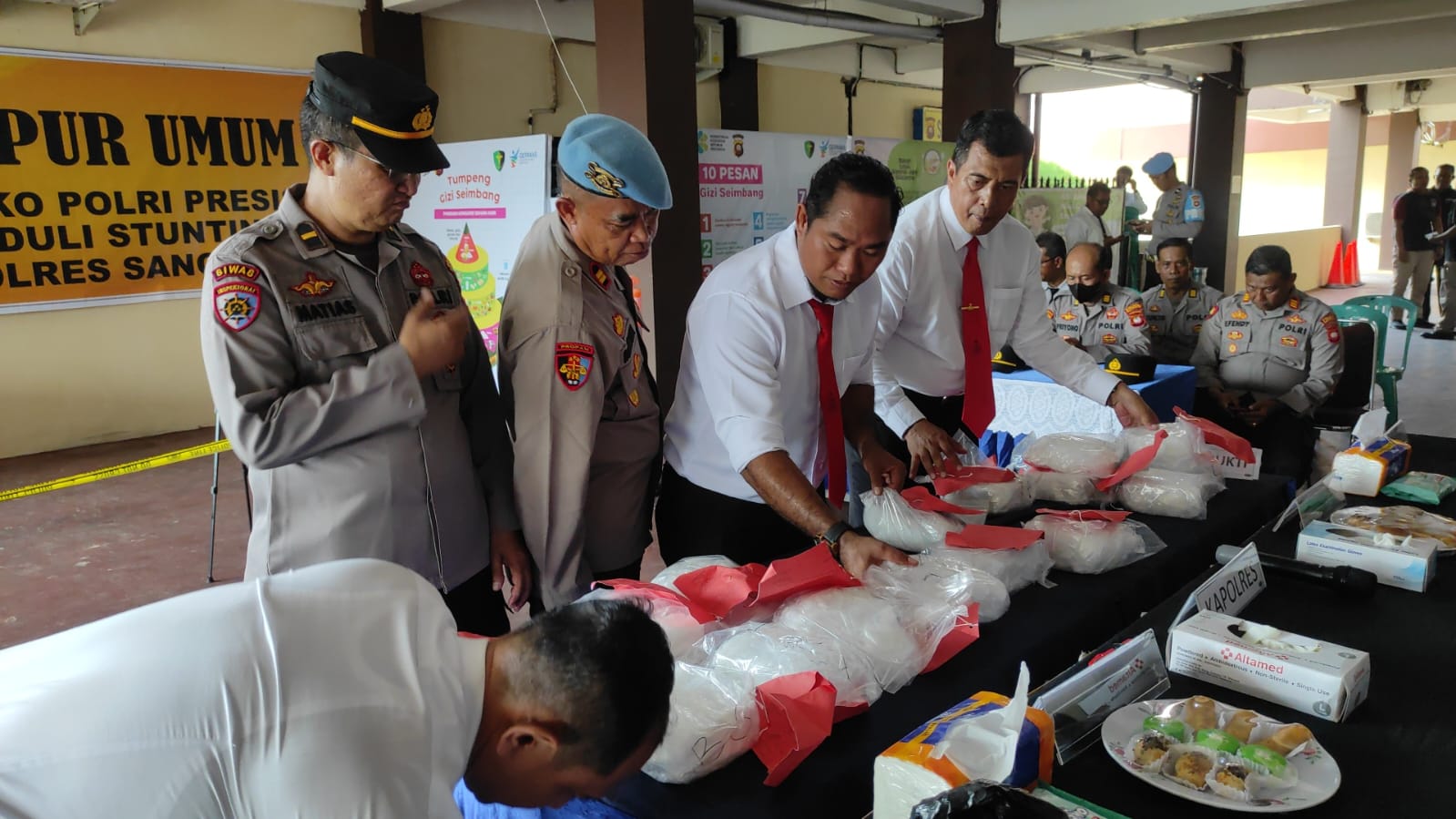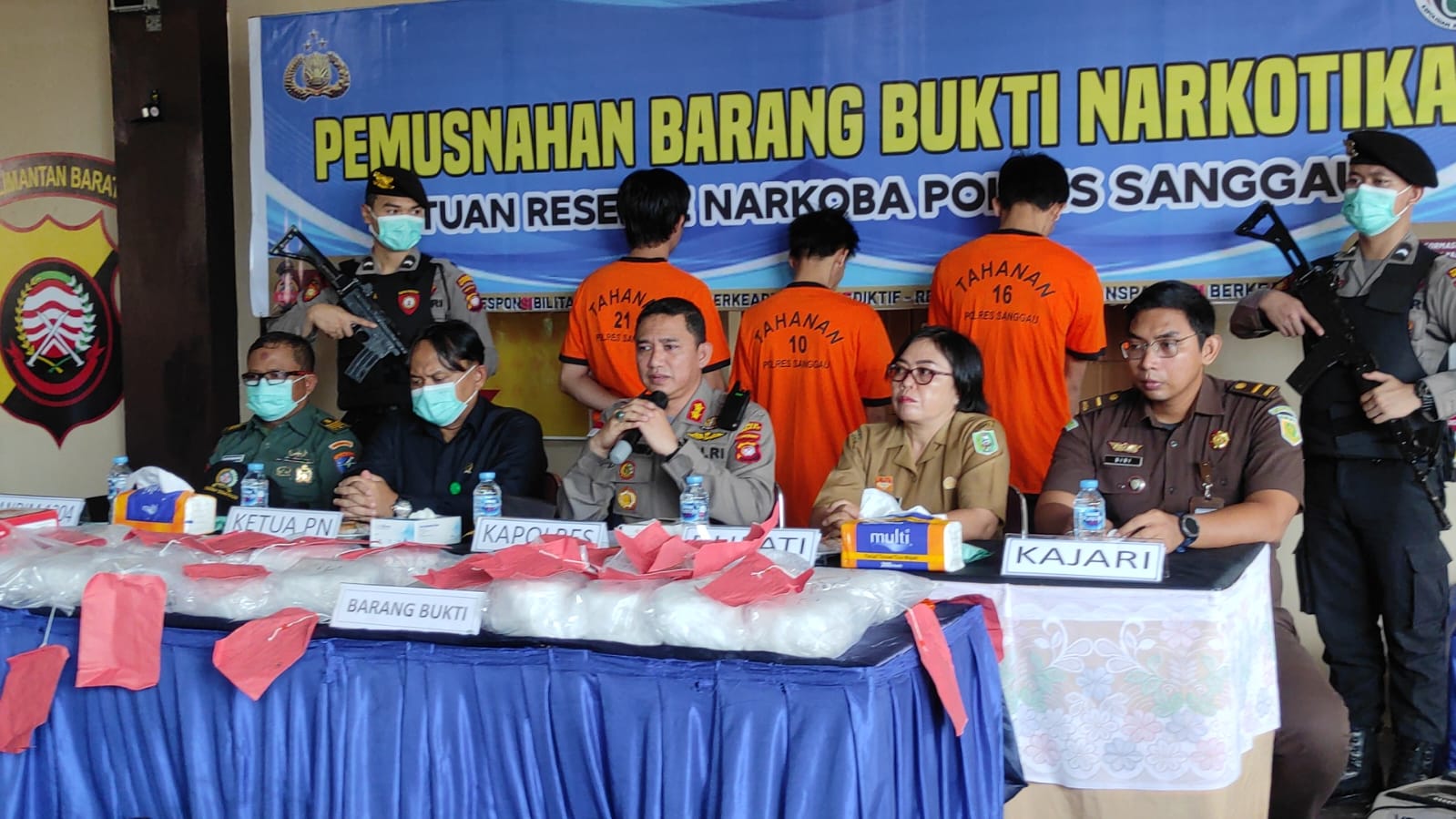Dalam sambutannya Kapolres Sanggau AKBP Suparno Agus Candra Kusumah mengatakan bahwa pemusnahan barang bukti tindak pidana narkotika sebanyak 20 paket dengan berat netto 19.945,12 gram. Dalam kesempatan itu juga ditampilkan tiga orang tersangka.