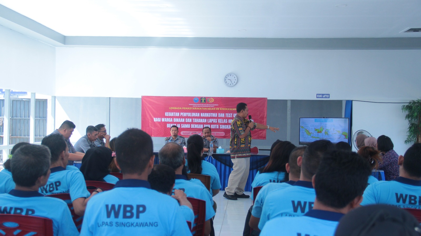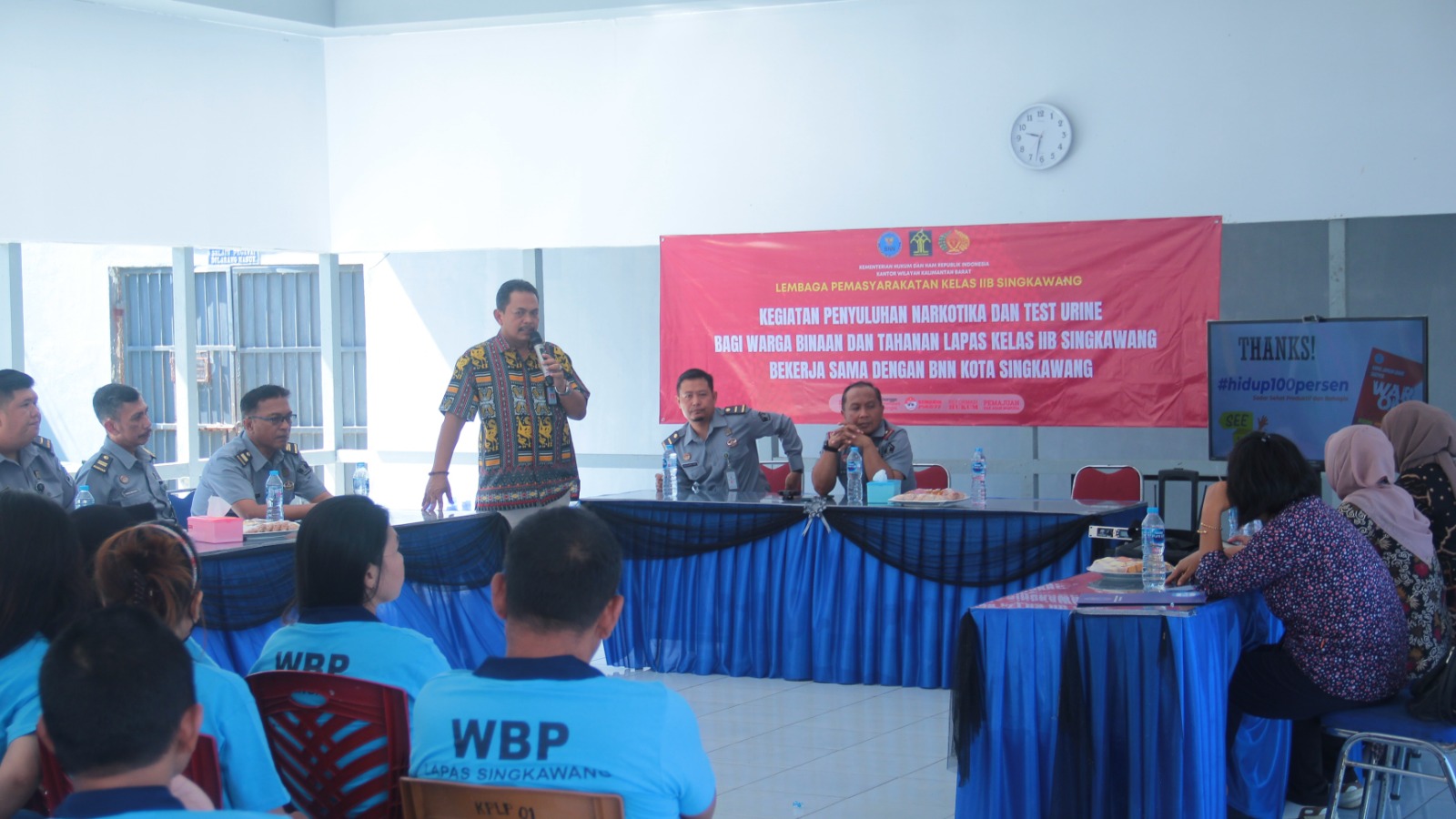 Singkawang – Lapas Kelas IIb Singkawang bersama Badan Narkotika Nasional (BNN) Kota Singkawang berikan penyuluhan dan pengecekan tes urine kepada warga binaan Lapas Kelas IIb Singkawang.