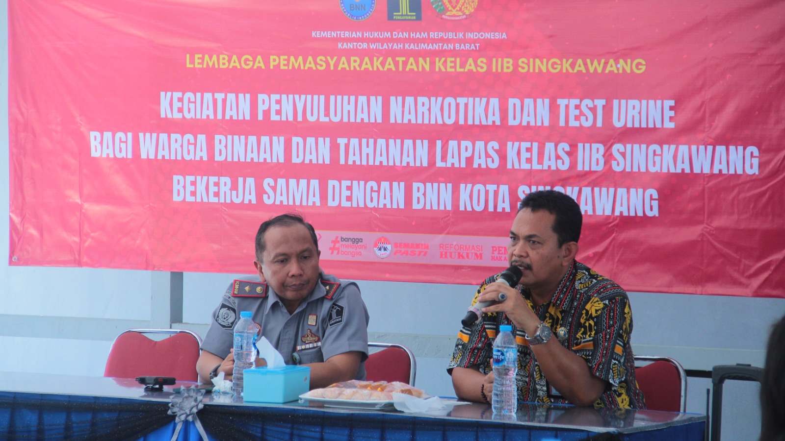 Kalapas Singkawang, Priyo Tri Laksono dalam sambutannya mengatakan bahwasanya sebagai wujud sinergitas dan bentuk kerjasama sebagai upaya deteksi dini dalam pencegahan, pemberantasan, penyalahgunaan dan peredaran gelap narkoba di lingkungan Lapas, menggandeng Badan Narkotika Nasional Kota Singkawang untuk memberikan kegiatan penyuluhan terhadap bahaya narkoba dan melakukan tes urine kepada warga binaan Lapas Singkawang, hal ini sebagai komitmen kita bersama dalam menggelorakan anti narkoba di lingkungan Lapas.