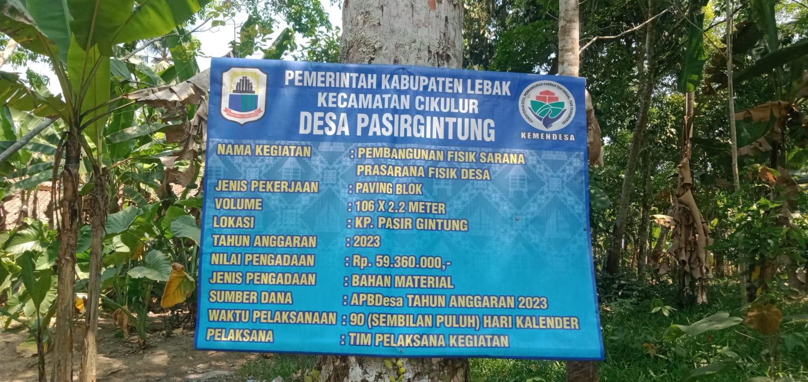 Star7tv.com – Lebak – Pekerjaan jalan pemasangan paving block dan (TPT) Desa Pasir Gintung Kecamatan Cikulur Kabupaten Lebak yang menggunakan Sumber Anggaran Dana Desa (DD) Tahun 2023, di duga dikerjakan asal_ asalan sehingga berdampak terhadap mutu dan kwalitas bangunan ,31/08/2023