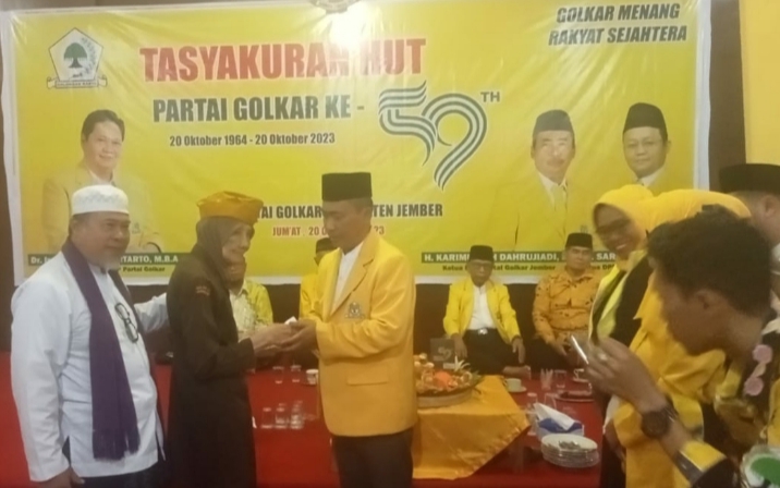 “Alhamdulillah, hari ini Partai Golkar Jember yang Insya Allah secara serentak se Indonesia di dalam rangka melakukan HUT Partai Ke 59. Ini waktu yang cukup panjang bagi Partai Golkar. ” Terang H. Karimullah.