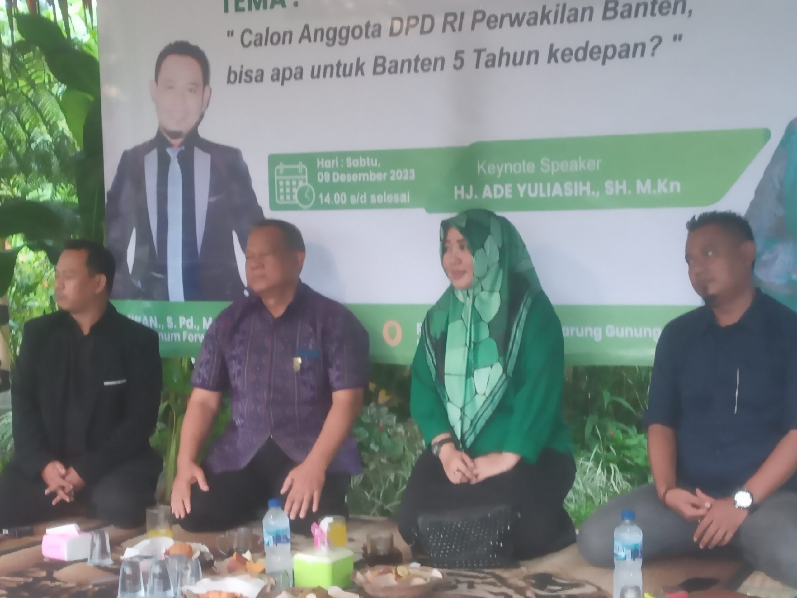 Ketua Presidium Forwatu Banten Arwan, S.Pd., M.Si menyampaikan saresehan politik tersebut di gelar untuk memberikan pemahaman tentang fungsi anggota DPD RI selama lima tahun untuk masyarakat pada umumnya.